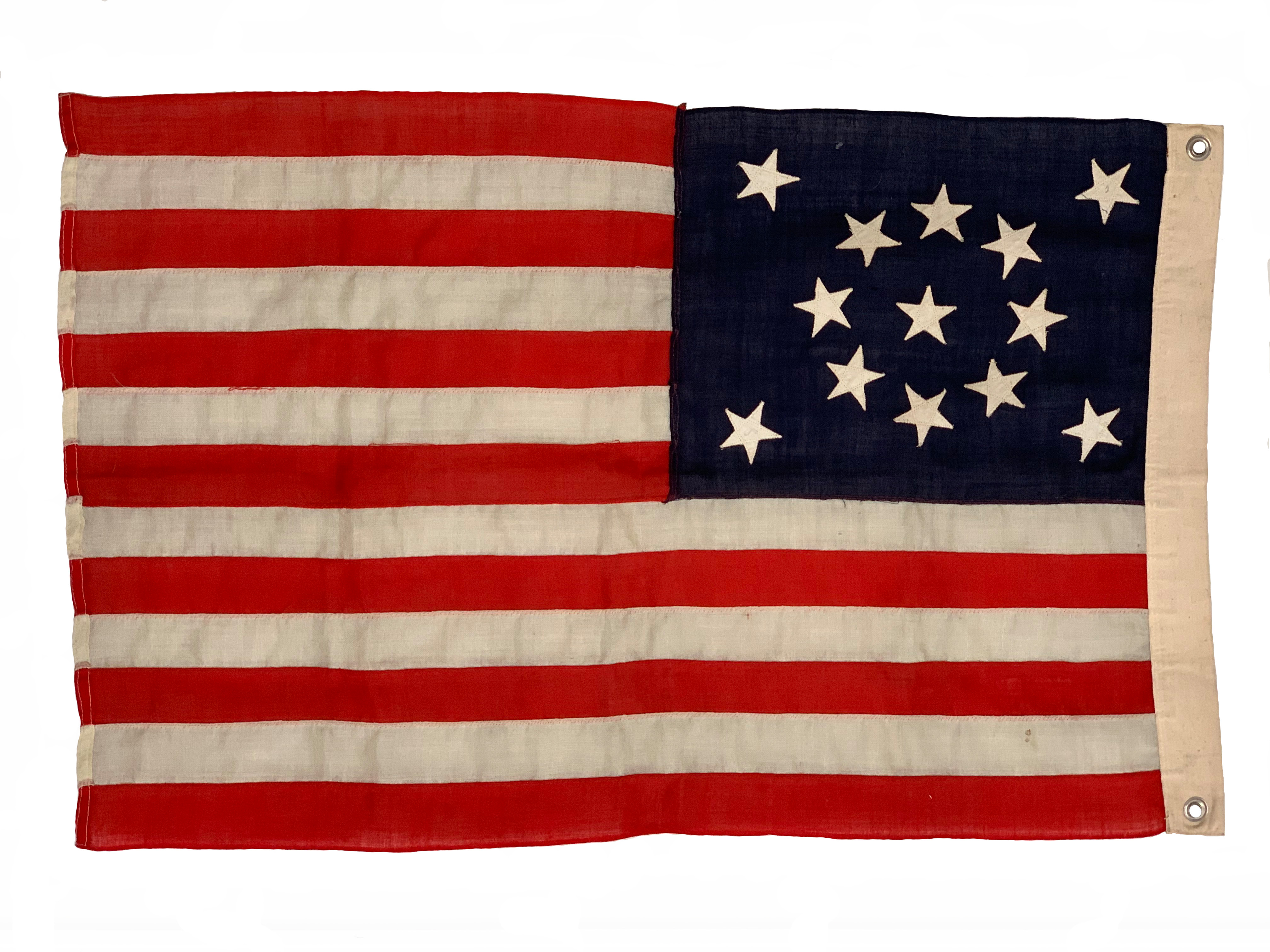 13 STAR AMERICAN NATIONAL FLAG, MEDALLION PATTERN, 1890-1920