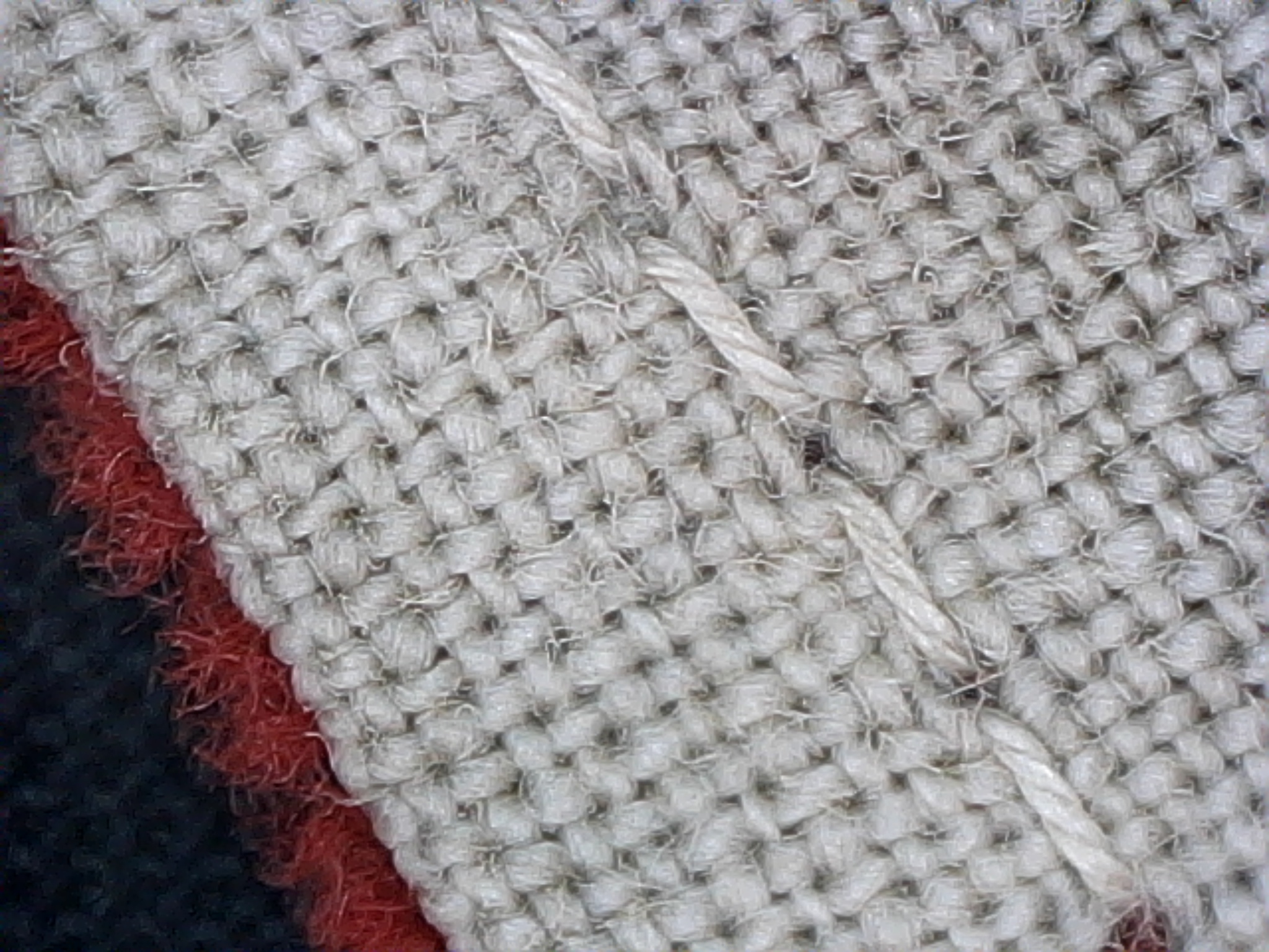 Rare Abraham Lincoln banner, fabric panels made in a blend of cotton and flax threads, the variation in yarn diameter and amount of twist is typical of hand-spun yarns which supports the fabrics being hand woven, two panels sewn together by lock stitching -top panel is in light khaki/dark khaki bottom; black-stenciled lettering A. LINCOLN for PRES 1864; there is a red narrow strip of cotton fabric machine stitched on the back of the top panel, it appears that it may have originally been part of a larger piece that was trimmed off.