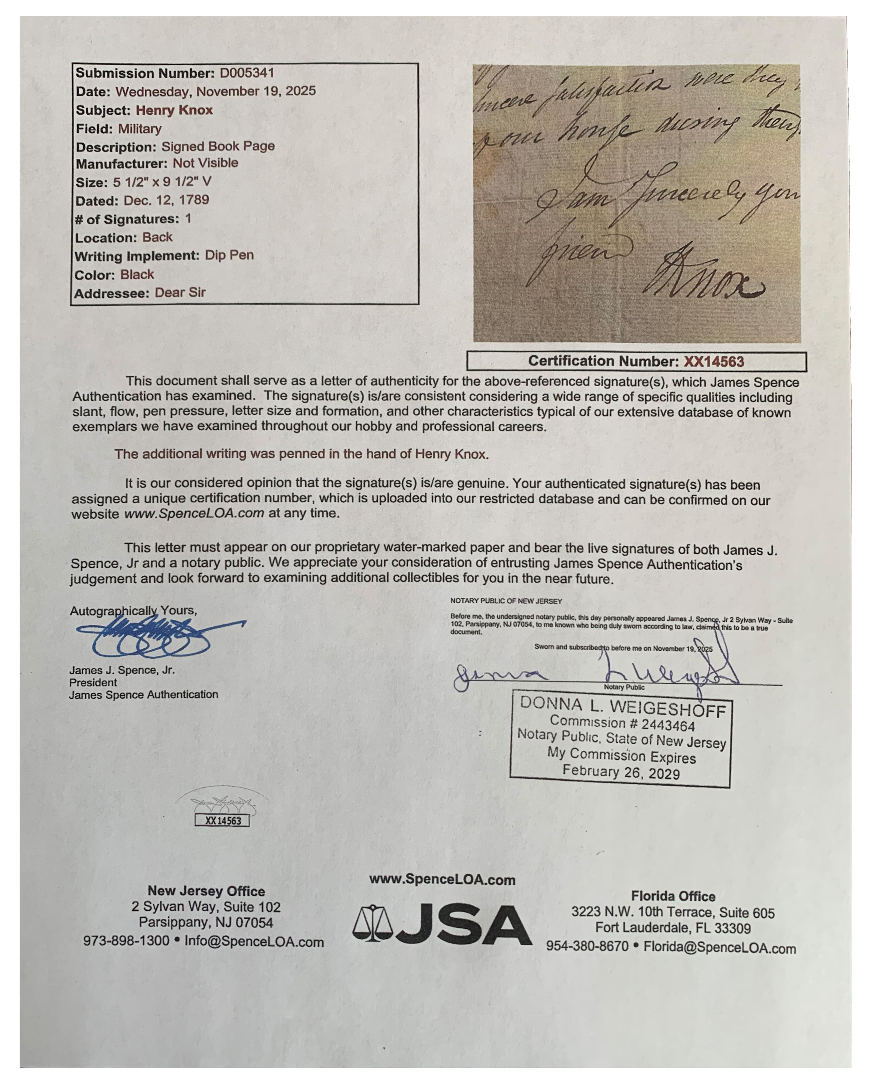 The two manuscripts have General Henry Knox's last name written by his hand four-times.